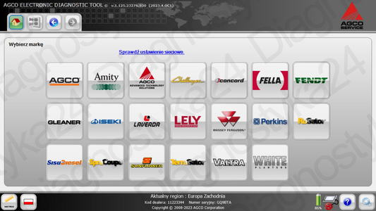 AGCO EDT 2023.10 Najnowsze Oprogramowanie Urządzenie AGCO CAN 2X4 4X4